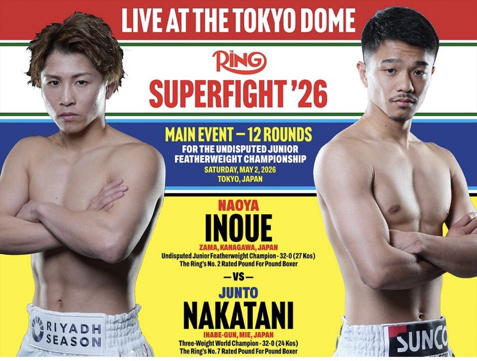On May 2, 2026, the Tokyo Dome will host what many are calling the biggest fight in Japanese boxing history: Naoya “The Monster” Inoue defending his undisputed super bantamweight (122-pound) titles against fellow unbeaten Japanese star Junto “Big Bang” Nakatani. Two of the world’s top pound-for-pound fighters, both 32-0, will collide in front of a sold-out crowd of over 55,000 in a rare all-Japanese undisputed title clash that has the entire boxing world buzzing.14